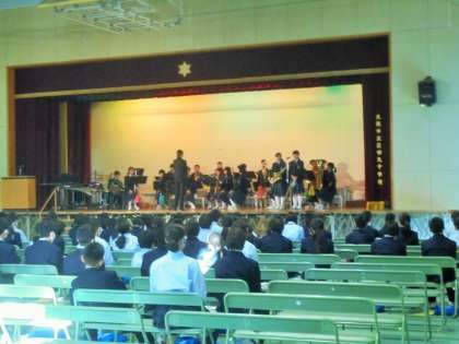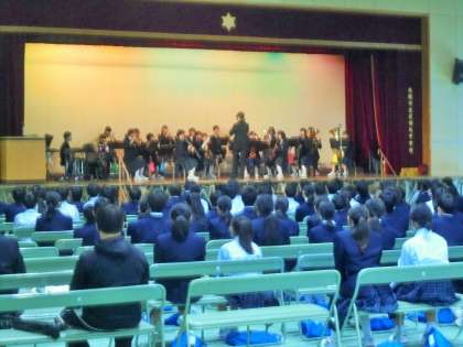 各学級の発表後、1年生の吹奏楽部員で演奏しました。