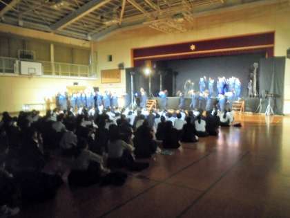 ワークショップで実演指導を受け、生徒の希望者も舞台に参加しました。