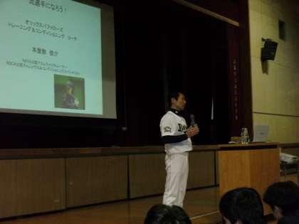 オリックス・バファローズのトレーニング&コンディショニングコーチ 本屋敷 俊介様を招き、「夢を叶えるには」と題し講演していただきました。