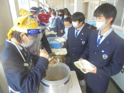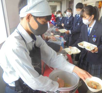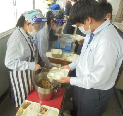 給食の配膳風景です。