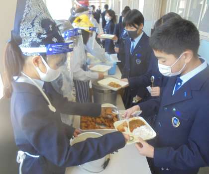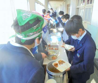 給食の配膳風景です。