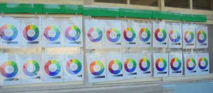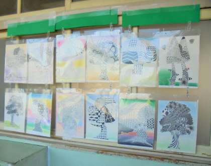 美術科で作成した作品を教室前に掲示しています。