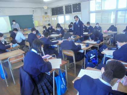 歌会を開き、学級の生徒が作った短歌を詠み味わいました。