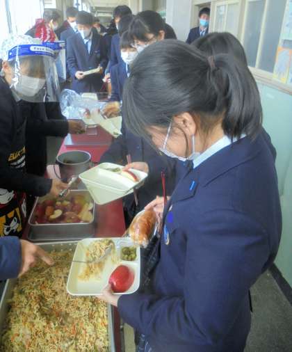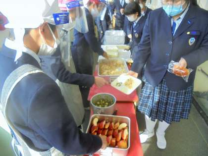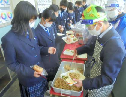 給食の配膳風景です。