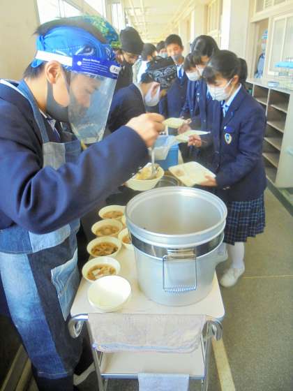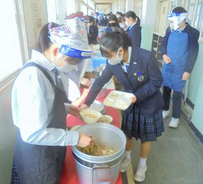 給食の配膳風景です。