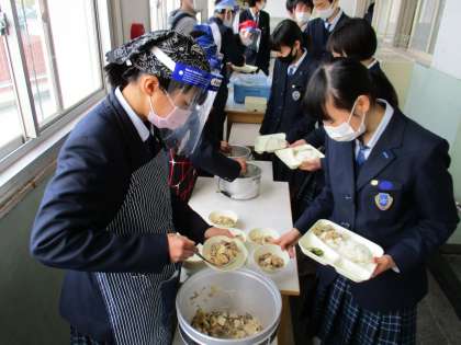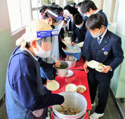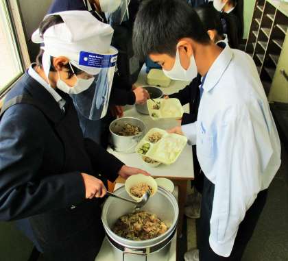 給食の配膳風景です。