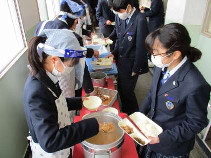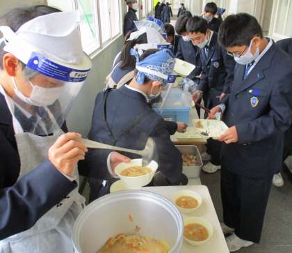 給食の配膳風景です。