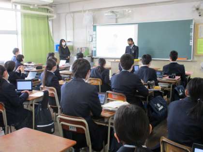 2年生 英語 スピーチの授業風景です。