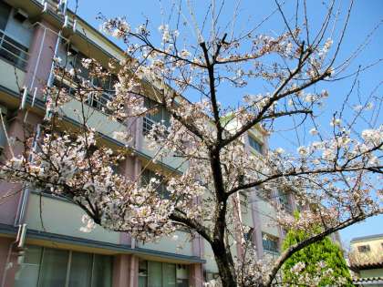 中庭の桜が咲いてきました。