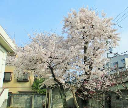 体育館裏の桜が満開です。