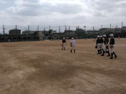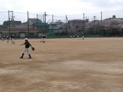 グラウンドでは、野球部が練習しています。