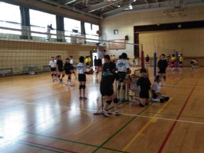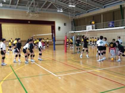 体育館では、バレー部が練習試合を行います。