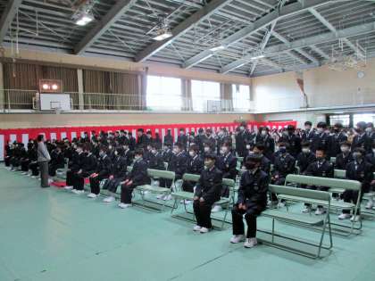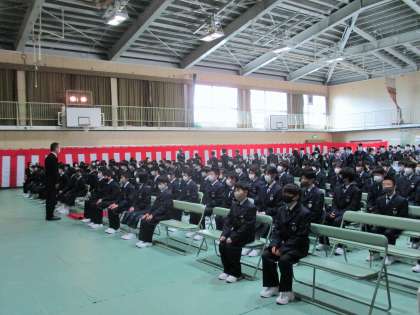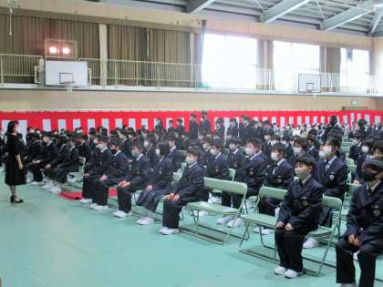 5学級168名が、真新しい制服に身を包み、勢揃いです。