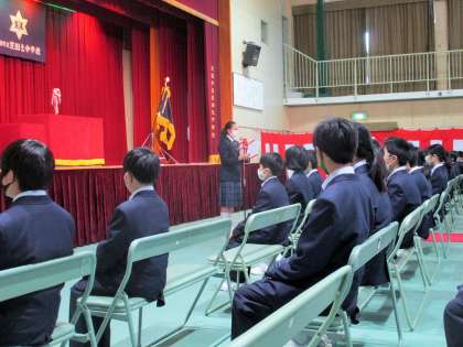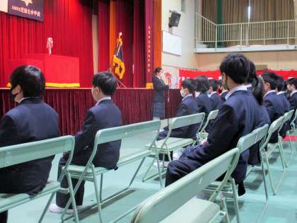 生徒会会長からお祝いの歓迎の言葉、新入生代表から入学の喜びのことばが述べられました。