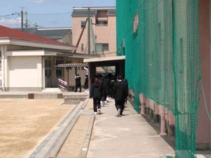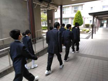 新入生たちは、校内を見て回っています。