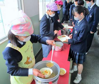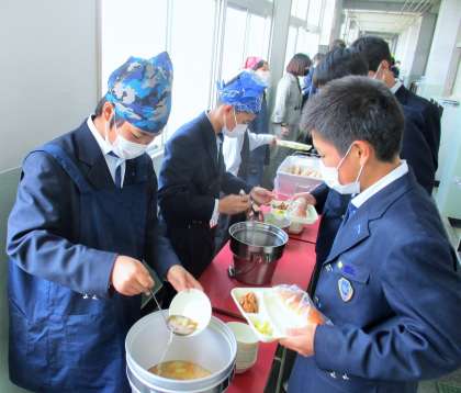 てきぱきと、係生徒が配膳をしています。