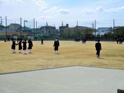 天候のよい日差しの中、元気に運動場で活動しています。