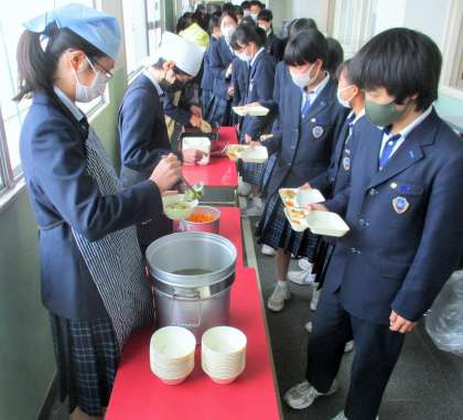 給食の配膳風景です。