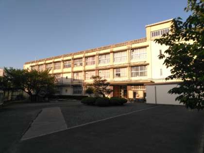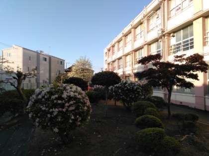 朝日に校舎が輝いています。