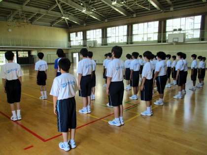 1年生 体育 整列の練習です。