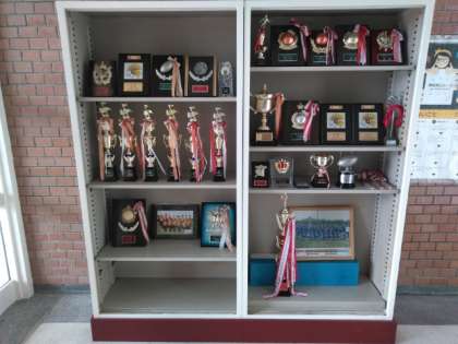 管理作業員さんの手によって、玄関ドアやトロフィーの陳列棚が美しくなりました。