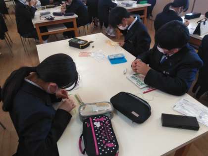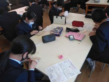 家庭科の被服実習。