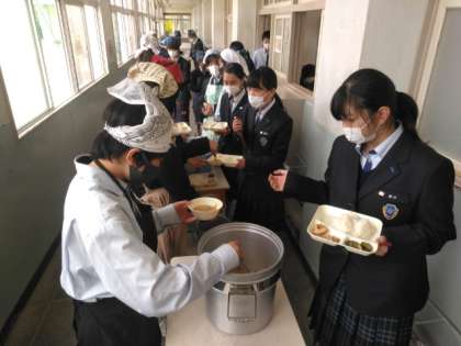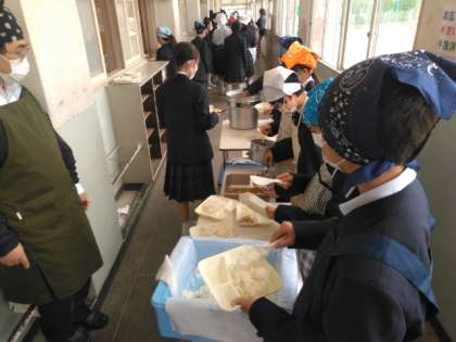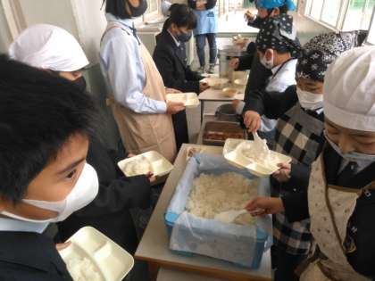 給食の準備に入りました。