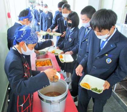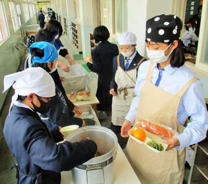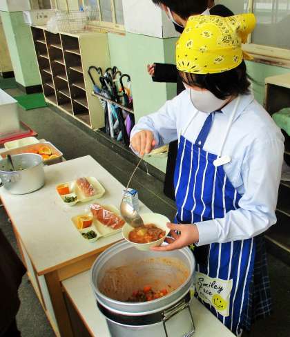 給食の配膳風景です。