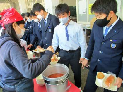 給食の配膳風景です。