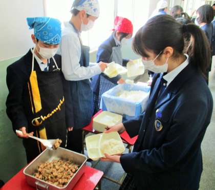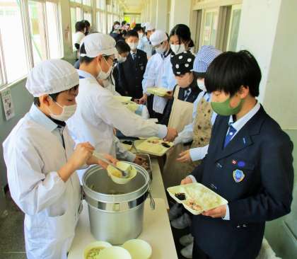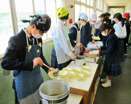給食の配膳風景です。