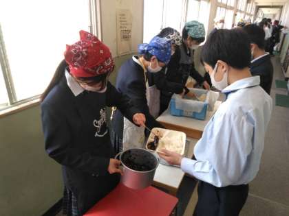 本日のメニューは、「鮭のごま味噌焼き」「野菜たっぷり五目汁」「ひじきの炒め煮」でした。