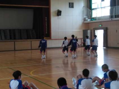 ラジオ体操のテストを行っています。