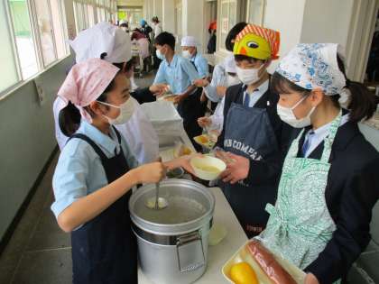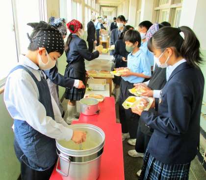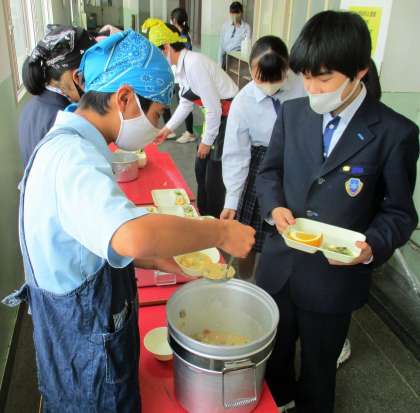 給食の配膳風景です。