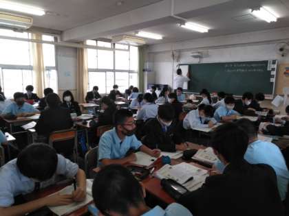 技術では、班ごとで身近にある電化製品について意見を出し合っています。