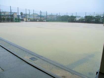 午前中の大雨で、運動場が池のようになりました。