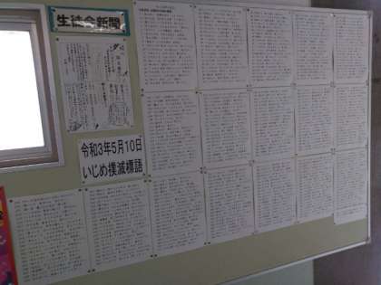 5.10「いじめを考える日」より、生徒や保護者の皆様から考案してもらった「いじめ撲滅標語」が出揃いました。
