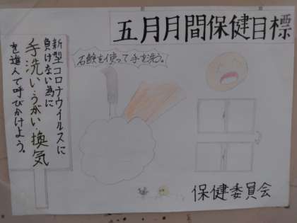 保健委員会から、5月の月間目標「コロナ対策」の連絡です。