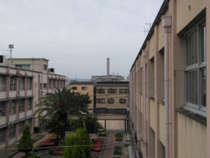 学校の3階渡り廊下から見た「鶴見工場」です。