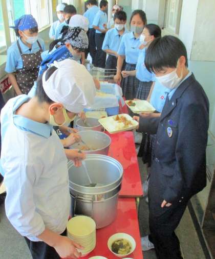 給食の配膳風景です。
