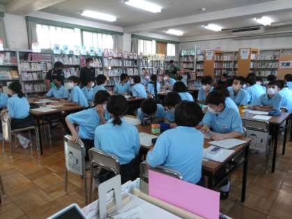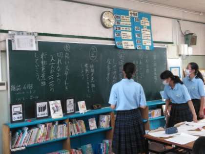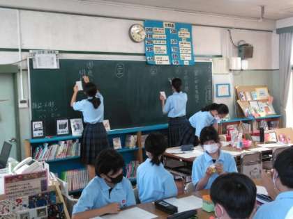 今月の目標について、各学年と委員長代表から、話し合いで原案が出され、みんなで議論しています。