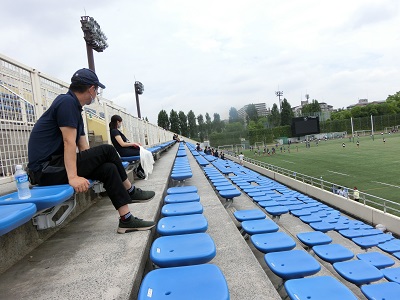素晴らしいスタジアムですが、コロナのため、保護者の皆様の無観客がとても残念です。