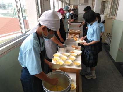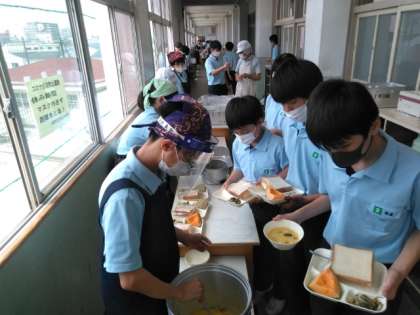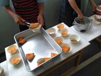 今日のメニューは、「かぼちゃのクリームシチュー」「ミックス海藻のサラダ」「クインシーメロン」です。