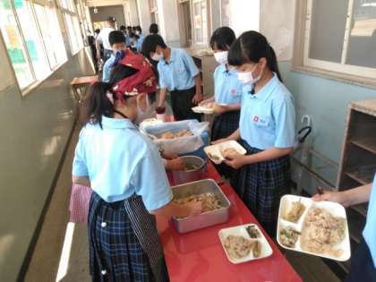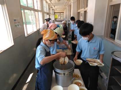 今日のメニューは、「イワシの天ぷら」「野菜たっぷり五目汁」「豚肉と三度豆の炒めもの」でした。
