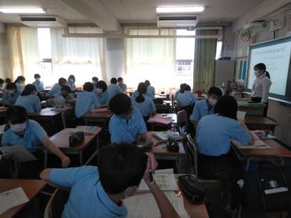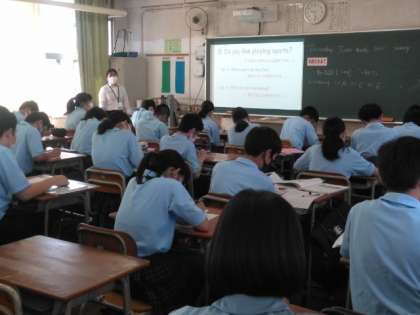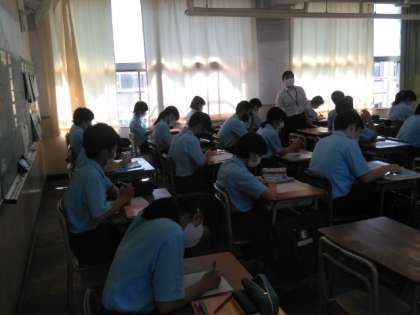 先生が説明して、生徒はワークシートに記入を。そして、ペアワーク。