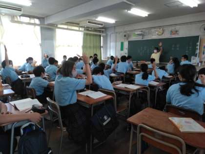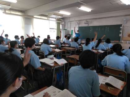 先生からの質問に、一斉に手が上がります。