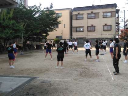 卓球部、女子バレー部が、時間を大切にしながら、トレーニングに励んでいます。