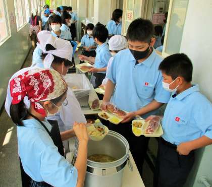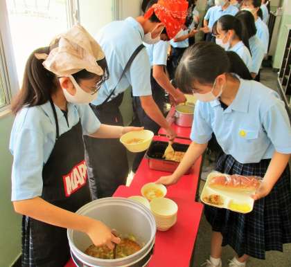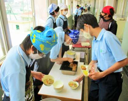 給食の配膳風景です。