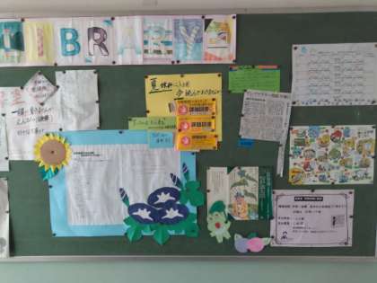 お昼休み、暑いグラウンドで動き回る人もいますが、雨の日は図書室を利用する人もたくさんいます。