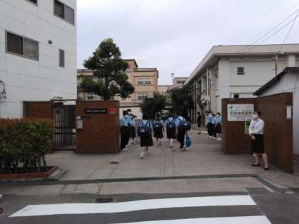 少し涼しい朝の風の中、児童さん、生徒たちが登校してきました。