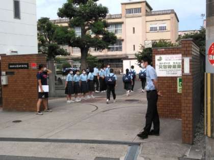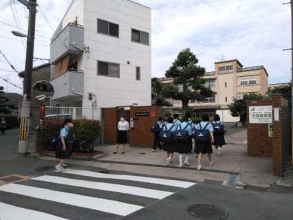 今朝も元気よく、児童さん、生徒たちが登校してきました。